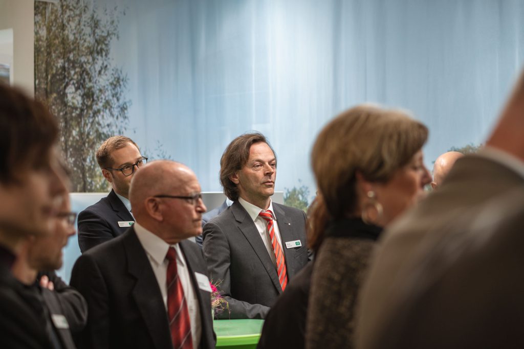 Rückzugsflächen mit modernster Schallschutztechnik geben ein ganz neues Gefühl von Beratung. Die offene Raumgestaltung im Erdgeschoss von Haus 6 ist effizient und lädt gleichzeitig durch grossflächige Naturaufnahmen zum Verweilen ein. Die Zentrale hat im zweiten Stock kurze Wege und direkten Zugang zum Kundenbereich.