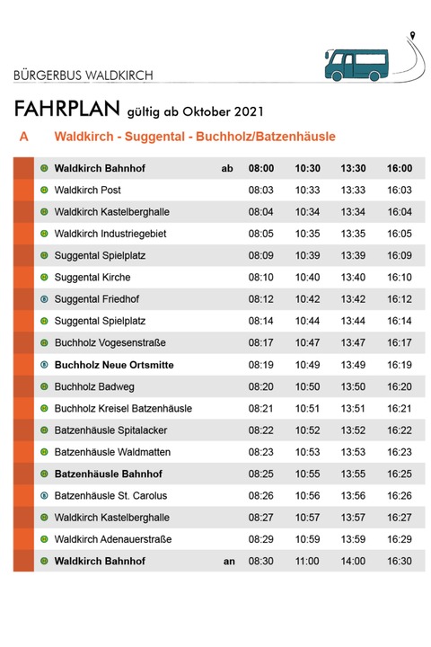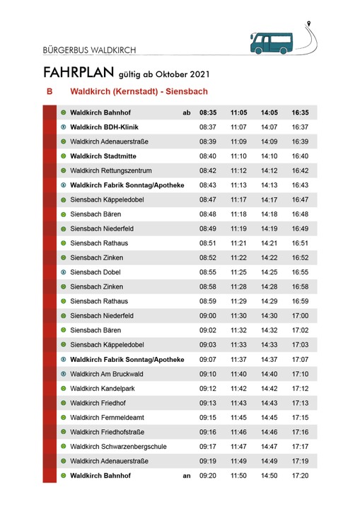 Der Waldkircher Bürgerbus verkehrt ab sofort kostenlos immer montags, mittwochs und samstags auf drei Linien zwischen den Stadtteilen Waldkirch, Kollnau, Siensbach, Suggental, Buchholz und Batzenhäusle.